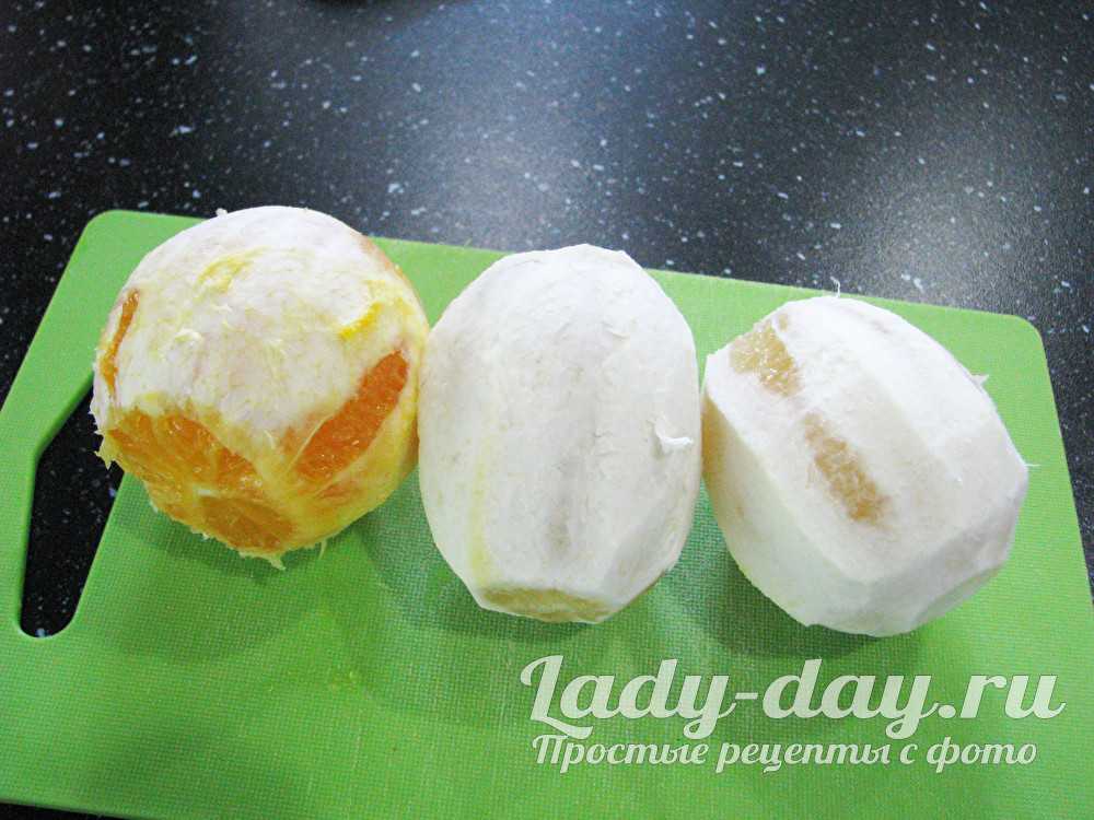 Помойте апельсин, натрите на крупной терке цедру. Затем срежьте белую часть, поскольку она придает горчинку