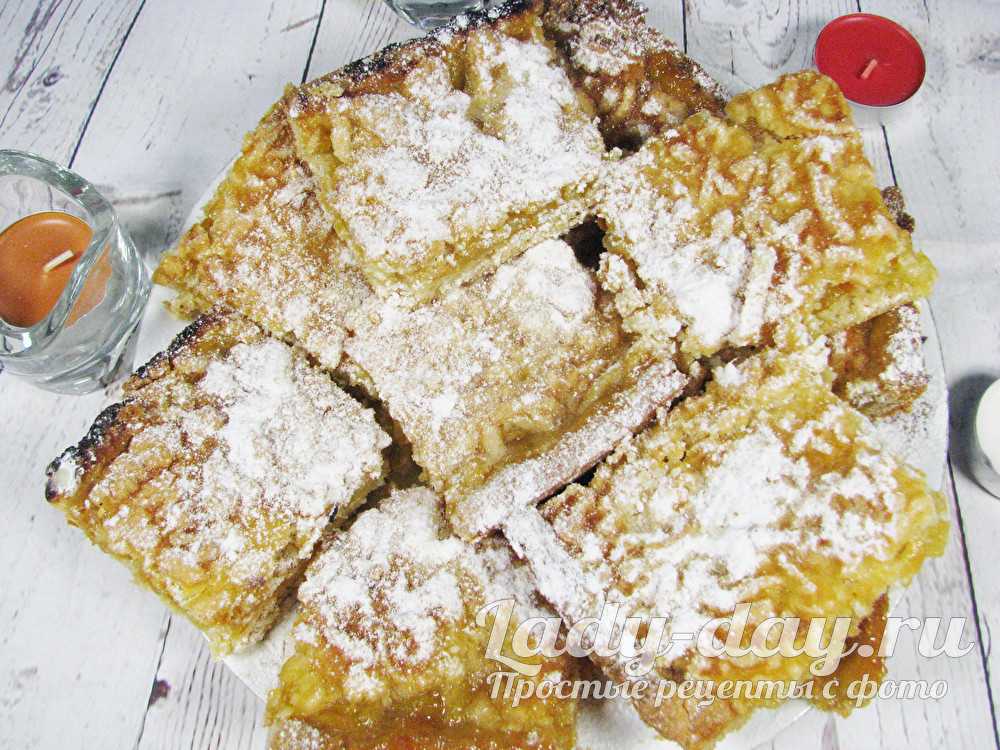 Слегка охлажденный пирог присыпаем сахарной пудрой.