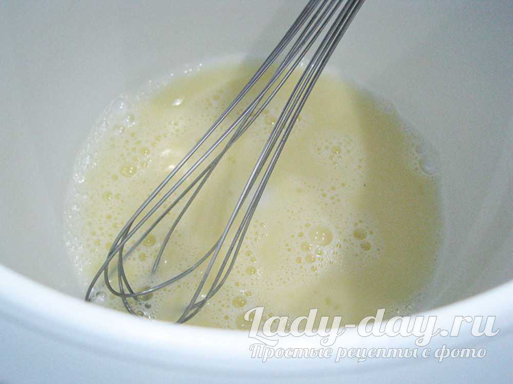- Взбиваем миксером куриные яйца до образования пены. Отправляем их основную массу.
