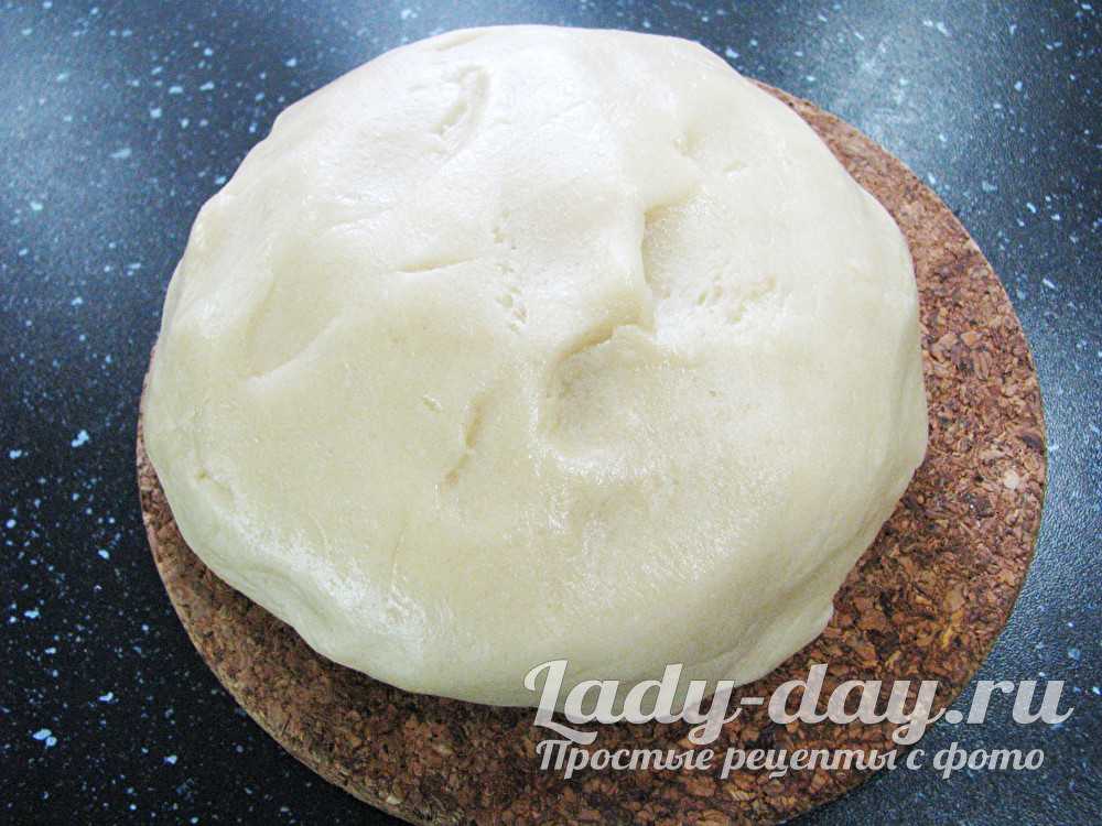 - Перенесите тестовую массу на стол, вымешивайте руками, пока она не станет плотной. Заверните ком в пленку, поместите на полку холодильника на полчаса.