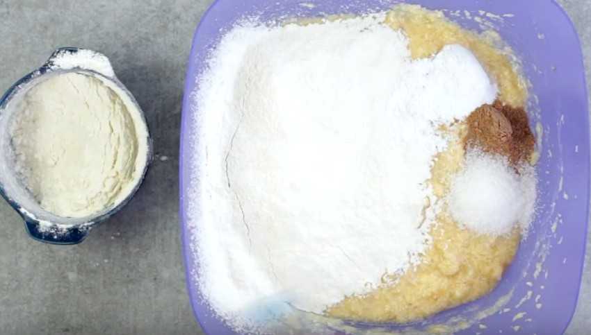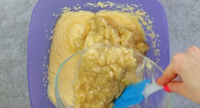 Творожно-банановый кекс по этому рецепту готовится в такой последовательности: