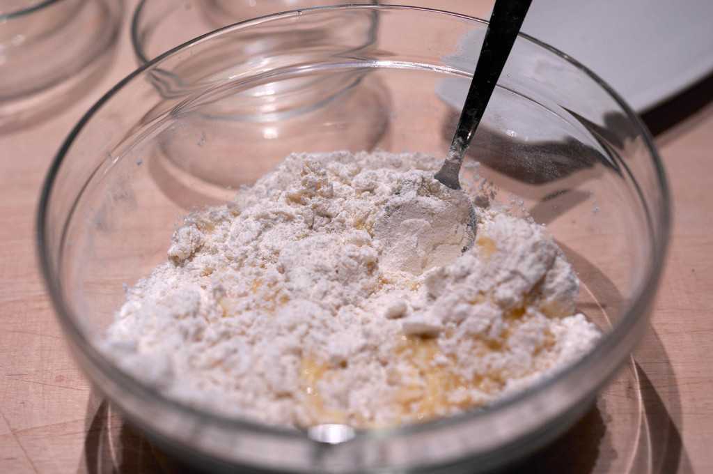 - Добавить постепенно муку (не всю сразу, добавляем по стакану) и замесить. Тесто на баурсаки должно немного прилипать к рукам, но быть эластичным, не стоит добавлять слишком много муки, иначе изделия будут чересчур жесткими;