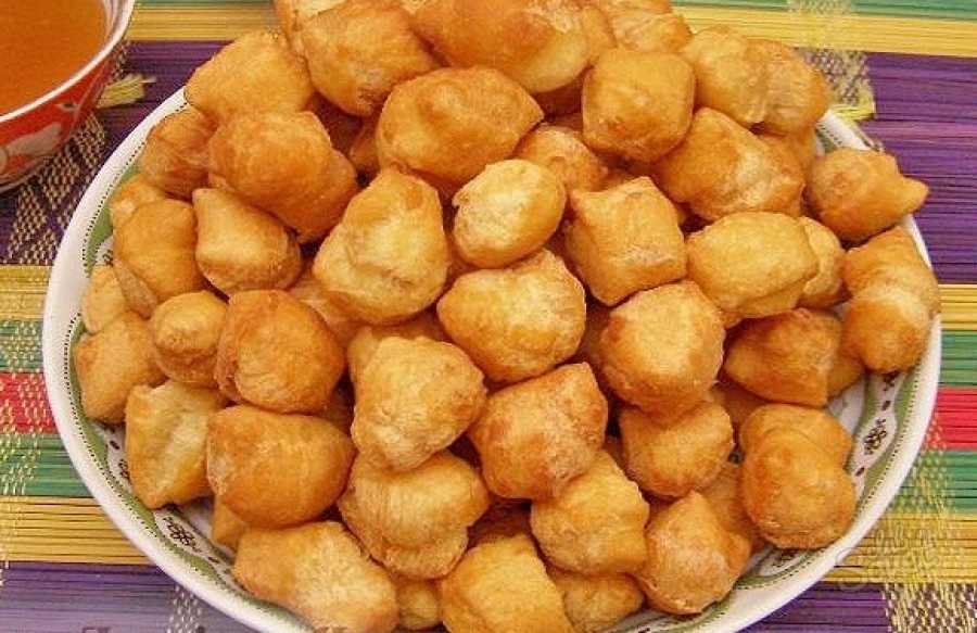 Баурсак татарский — это всегда праздничное блюдо, посыпанное пудрой сахарной или политое любым сиропом . Он напоминает чак-чак, только большего размера. Представленный ниже рецепт из яичного теста.
