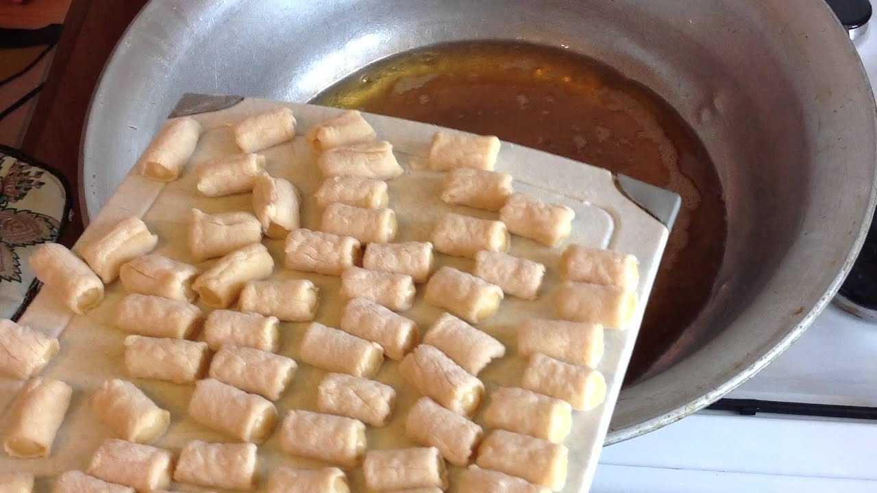 Не раньше чем через пять часов настоявшееся тесто помещают на гладкую поверхность, присыпанную небольшим количеством муки, разделяют на небольшие шарики приблизительно одинакового размера и осторожно погружают их в глубокий казан, заполненный разогретым растительным маслом. Чтобы они равномерно подрумянились, их нужно осторожно переворачивать при помощи обычной кухонной шумовки
