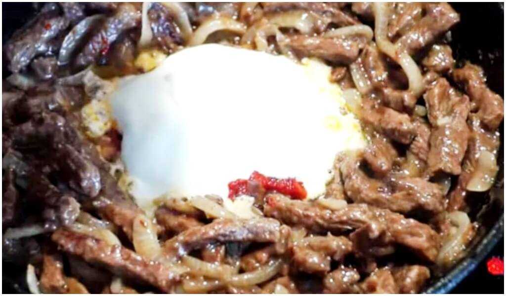 Бефстроганов из говядины – классический рецепт со сметаной на сковороде