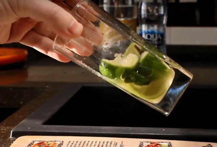 В стакан укладывают сахарный песок, если это необходимо, но можно приготовить напиток и без него. После этого наливают в стакан сок лайма.