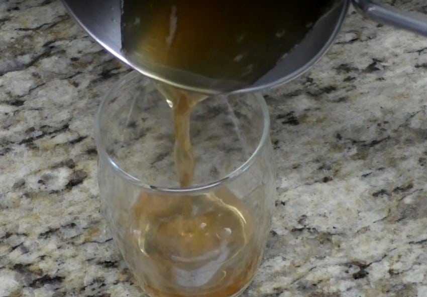 - Даем сиропу закипеть и сразу выключаем огонь. Перельем в стакан, чтобы он полностью остыл.