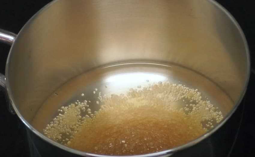1. Для начала приготовьте сахарный сироп. Смешайте в равных количествах тростниковый сахар и воду.