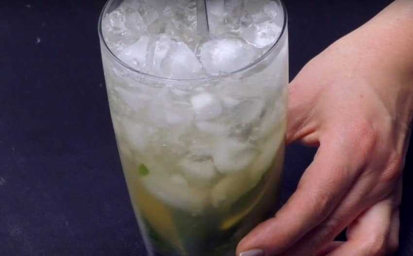 В стакан выкладывается смесь лимона и мяты, доливается ром. Добавляется лед и заливается вся эта прелесть газированной водой.