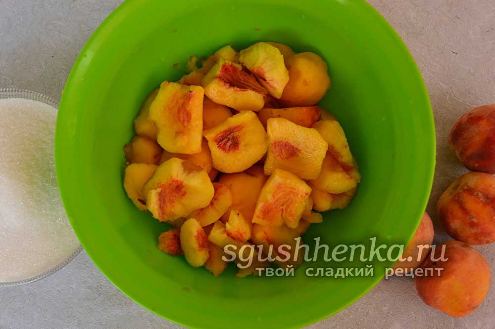 - Персики очистить и удалить косточки. Абрикосы тоже избавить от косточки.