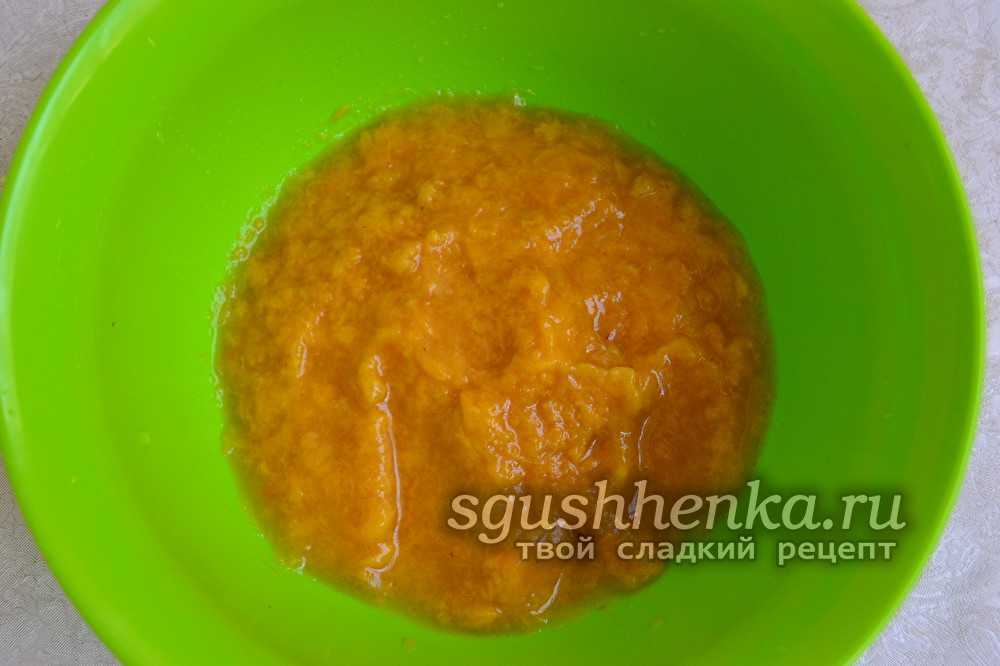 - Апельсин следует нарезать тонкими дольками вместе с кожурой, удалить косточки и измельчить блендером.