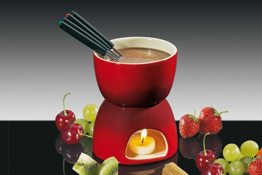 Тепло может обеспечивать обычная свеча или специальная горелка. Необходимое условие работы последней – топливо (таблетки или гель). Небольшая керамическая емкость со свечой идеально впишется в романтическую обстановку, но в ней можно сделать только шоколадное фондю, для прочих разновидностей температура слишком низкая. Горелкой можно нагревать котелок из любого материала, разного объема. Чаще всего она оснащена терморегулятором, позволяющим варьировать высоту пламени. Основное достоинство таких фондюшниц – мобильность.