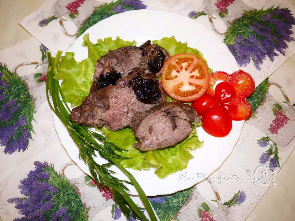 Готовое мясо оставим, оно должно полностью остыть. Подаём готовое мясо в черносливе к столу. Приятного аппетита!