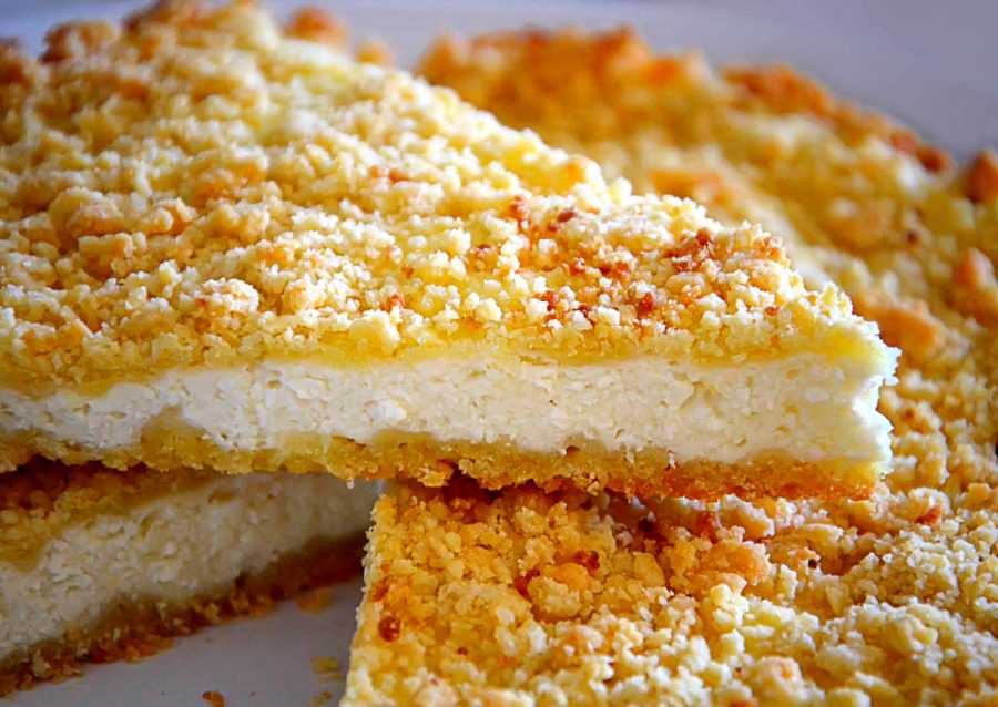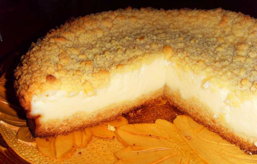 Некоторые не закрывают верх начинки тестом, а просто посыпают крошкой из него. Это делает пирог полуоткрытым.