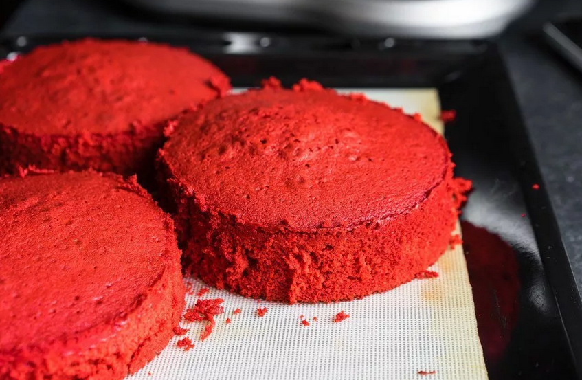 4. Следом добавляем краситель до ярко красного цвета. Цвет должен быть очень насыщенным и ярким для того, чтобы цвет у торта такой и остался.