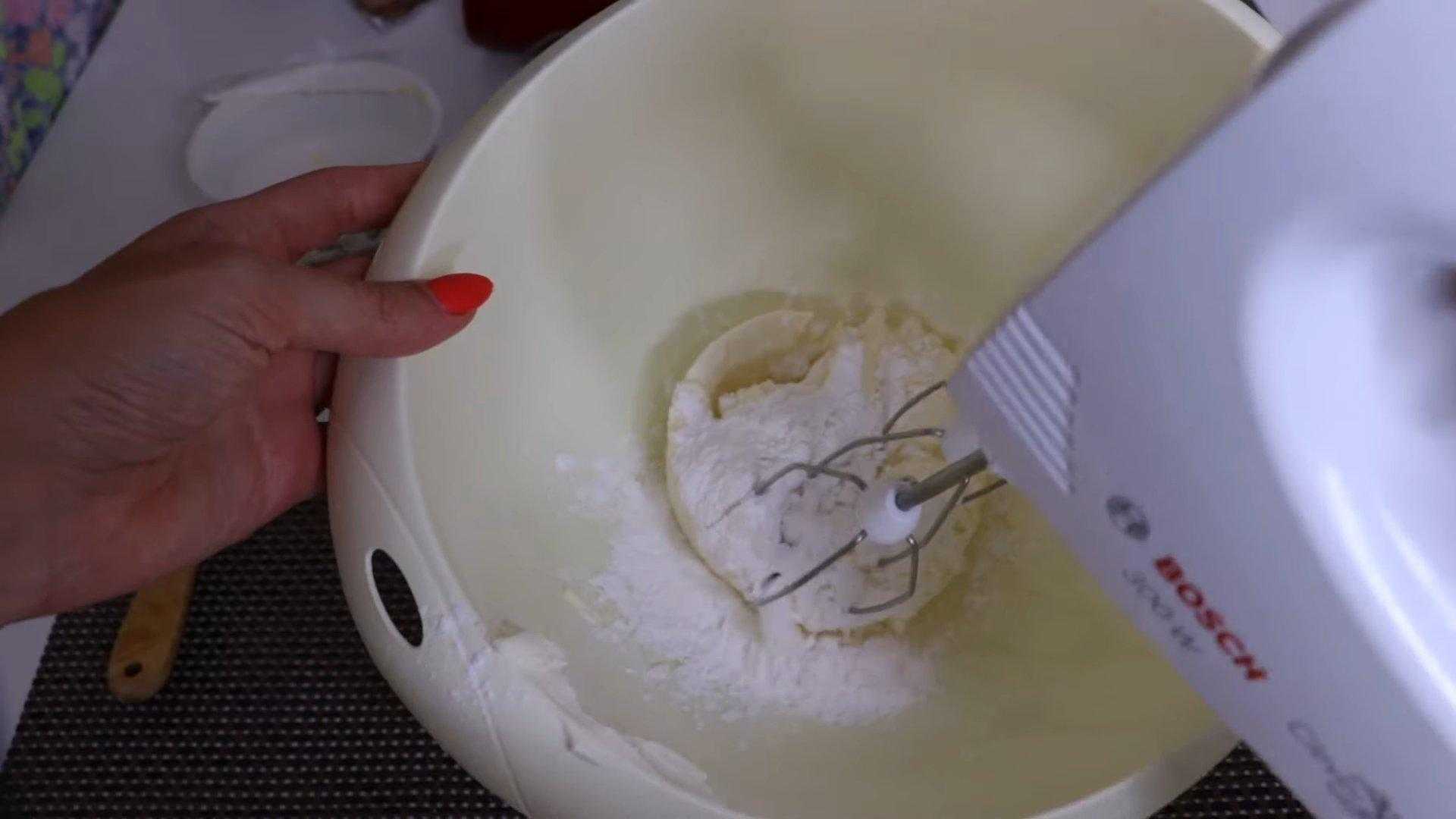 Взбиваем ингредиенты миксером на низкой скорости до однородной массы.