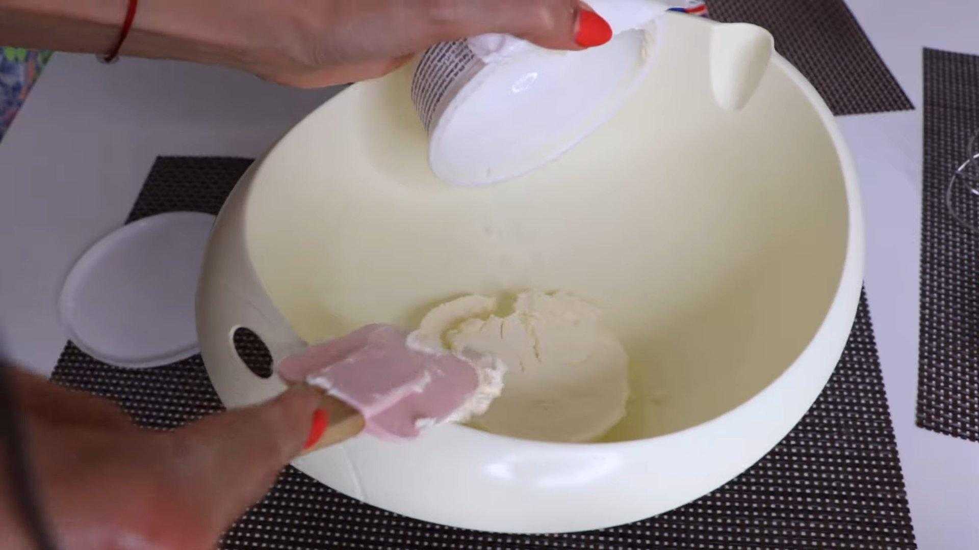 Хорошо охлажденный маскарпоне перекладываем в глубокую миску.