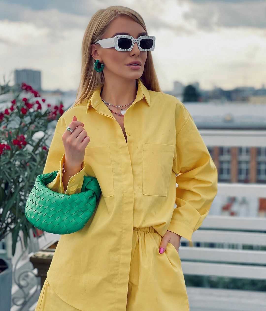 Длинная свободная рубашка вполне может вам заменить платье. В таком варианте также есть много вариантов. Можно носить с ремнем или без, скомбинировав с длинным пиджаком, модной обувью на лето, а также включить в свой образ актуальные аксессуары: трендовые солнцезащитные очки с желтыми стеклами или подходящую сумочку.