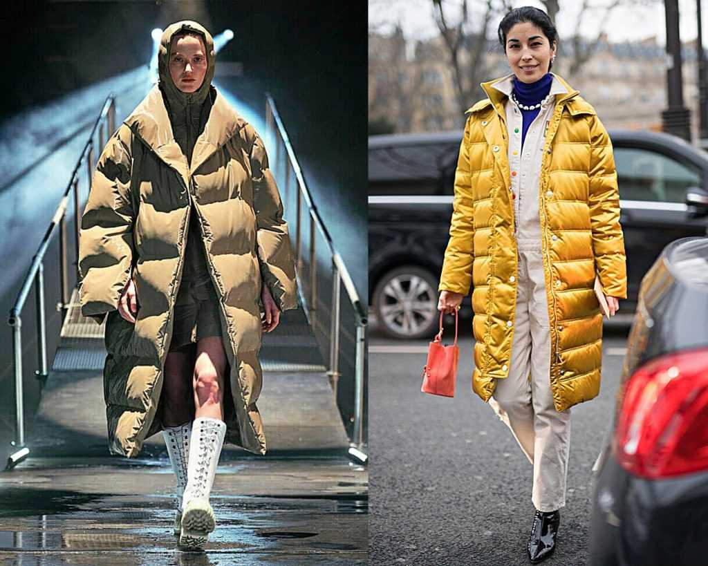 Стилисты советуют пуховик всё с теми же грубыми ботинками, кроссовками, ботильонами, сапогами на платформе.