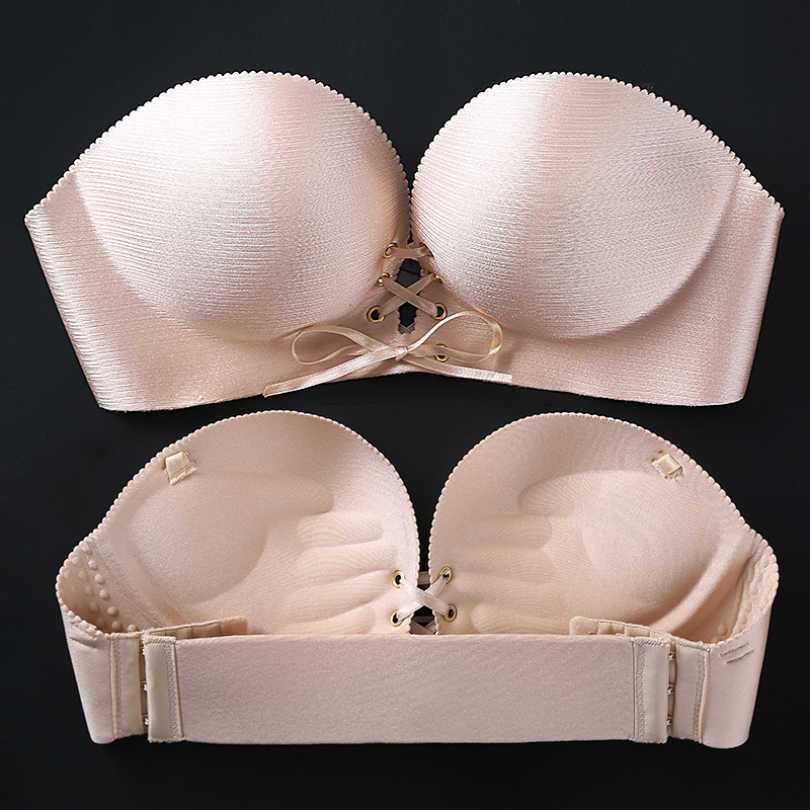 Популярная модель, позволяющая создать красивую ложбинку между молочными железами. Идеальный вариант под открытое вечернее платье или майку. Данная модель отличается отсутствием бретелей и планки на спине. Они закрывают только грудь. Для крепления к молочной железе используется специальная клеевая основа. Основным преимуществом данной модели является незаметность и возможность ношения с любыми нарядами. Однако она не подходит для постоянной носки. Рекомендуется носить такие лифчики не больше 3-4 часов и только по особым случаям.