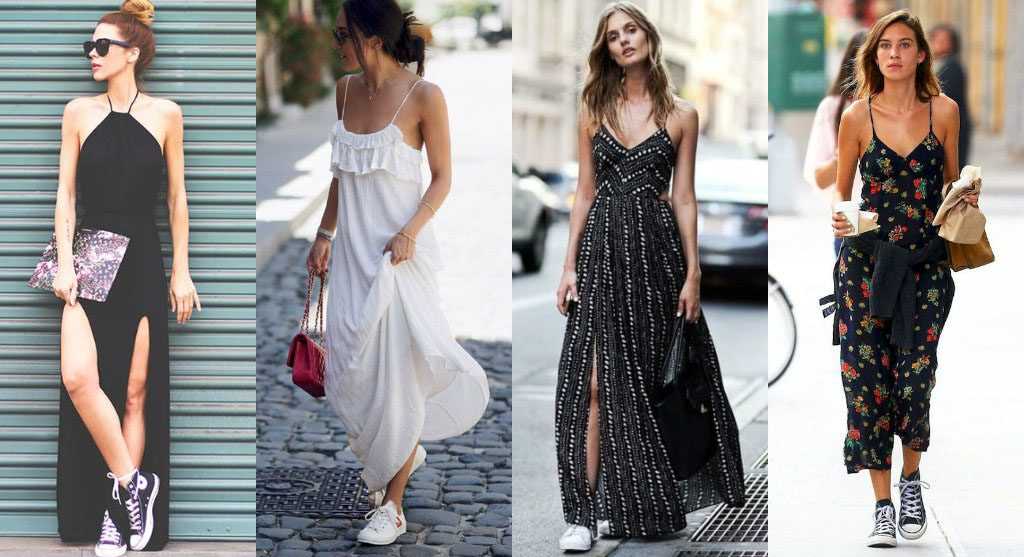 Макси и спортивная обувь. Такие наряды всегда ассоциируются с женственностью и трогательностью. И на первый взгляд может показаться, что спортивная обувь здесь совсем не уместна, но это лишь первое и обманчивое впечатление. На самом деле можно создать великолепный ансамбль, который лишь подчеркнет вашу хрупкость и утонченность. Хорошо здесь будут выглядеть белые кеды, в том числе и массивные, они помогут визуально сделать верх образа более изящным.