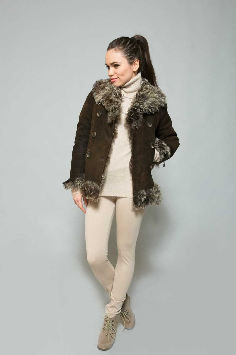 Такую дубленку можно надеть с коротким платьем или юбкой до колена, с прямыми или зауженными, но не облегающими брюками.