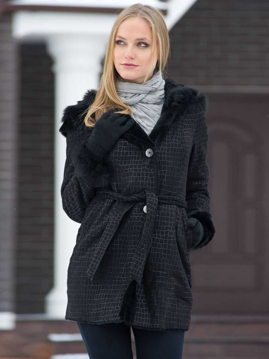 Классической можно назвать модель дубленки длиной до колена или чуть ниже колена, приталенную или расклешенную от линии плеч. Нередко такая дубленка снабжена капюшоном, что решает извечную проблему женщин с выбором головного убора.