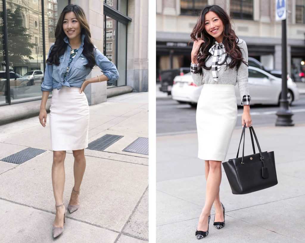 Для создания огромного количества образов вам потребуется лишь одна вещь — юбка-карандаш. Выбирайте модель из плотного трикотажа сдержанных тонов. В идеале остановиться на серой юбке среднего или темного оттенка. Именно этот вариант позволит создавать как строгие офисные, так и демократичные кежуал луки. Юбку-карандаш можно сочетать с рубашками и свитшотами, кроп-топами и футболками, изящными лодочками и удобными кроссовками.