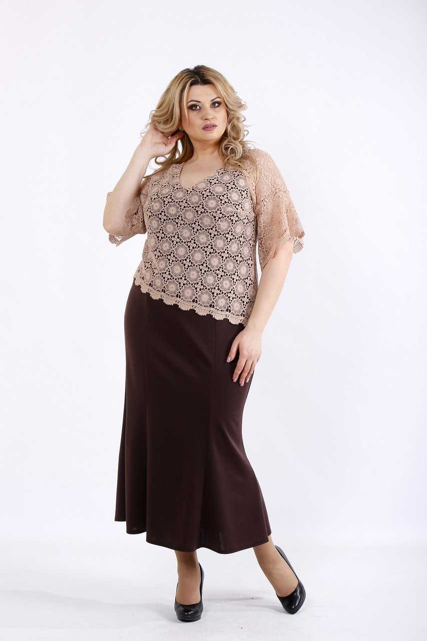- Отличным вариантом для полной женщины станет двухслойное платье: например, с верхним атласным слоем, а нижним – из кружева или гипюра.