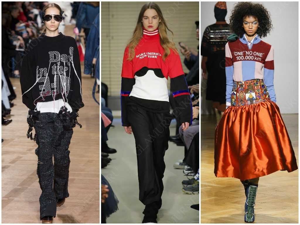 В вопросе свитеров стоит отметить главный тренд – oversize. Смело облачайтесь в теплые и уютные «безразмерки», в которых можно спрятать все недостатки фигуры и почувствовать себя защищено. Лучше всего, если свитшоты будут выполнены из ярких и насыщенных цветов и создавать контраст «нижнему» элементу гардероба (брюкам, джинсам, юбкам).