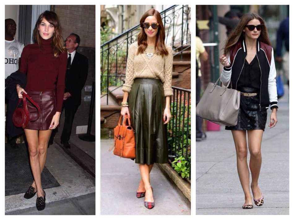 - Чем короче модель кожаной юбки, тем выше должна быть модель сапожек. К мини-юбке идеально подойдут ботильоны или ботинки в приближенным стиле.