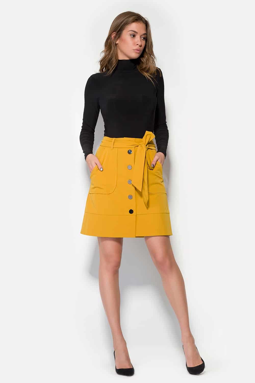 Короткая юбка — важная часть гардероба любой девушки, которая любит выставлять напоказ свои стройные ножки. Мини-юбка на пуговицах модна благодаря нестандартному дизайну.