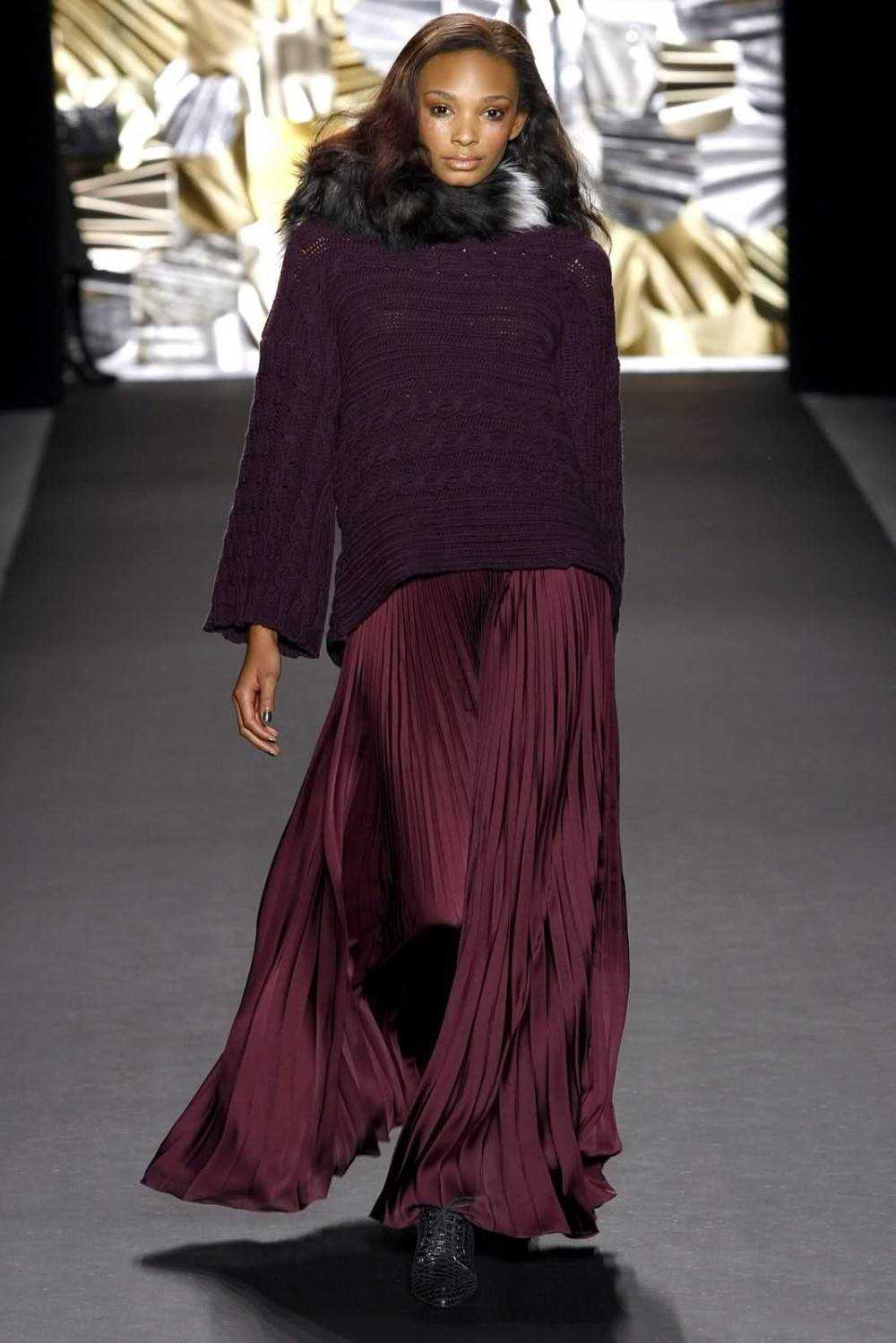 Для зимних образов можно использовать юбки-плиссе самой различной длины, но наиболее эффектно выглядят модели по колено или «в пол».