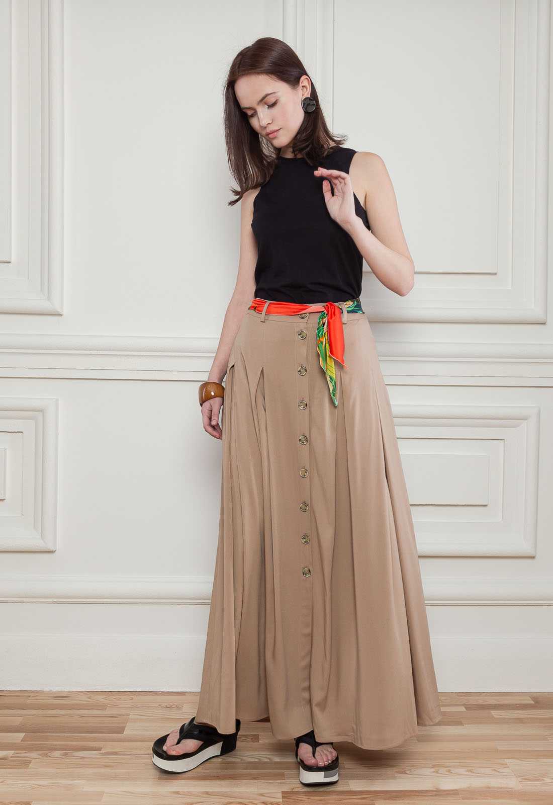 - Она подходит для любого телосложения, но больше подходит для высоких женщин, так как ее длина останавливается на уровне икр, а это визуально укорачивает силуэт.