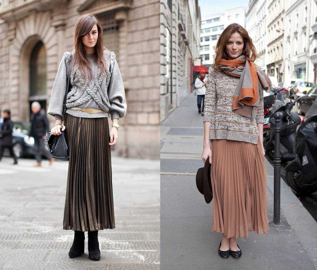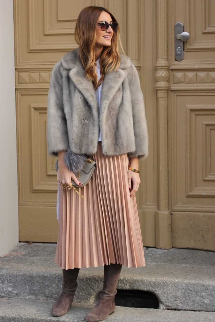 Стильные зимние образы с юбкой-плиссе