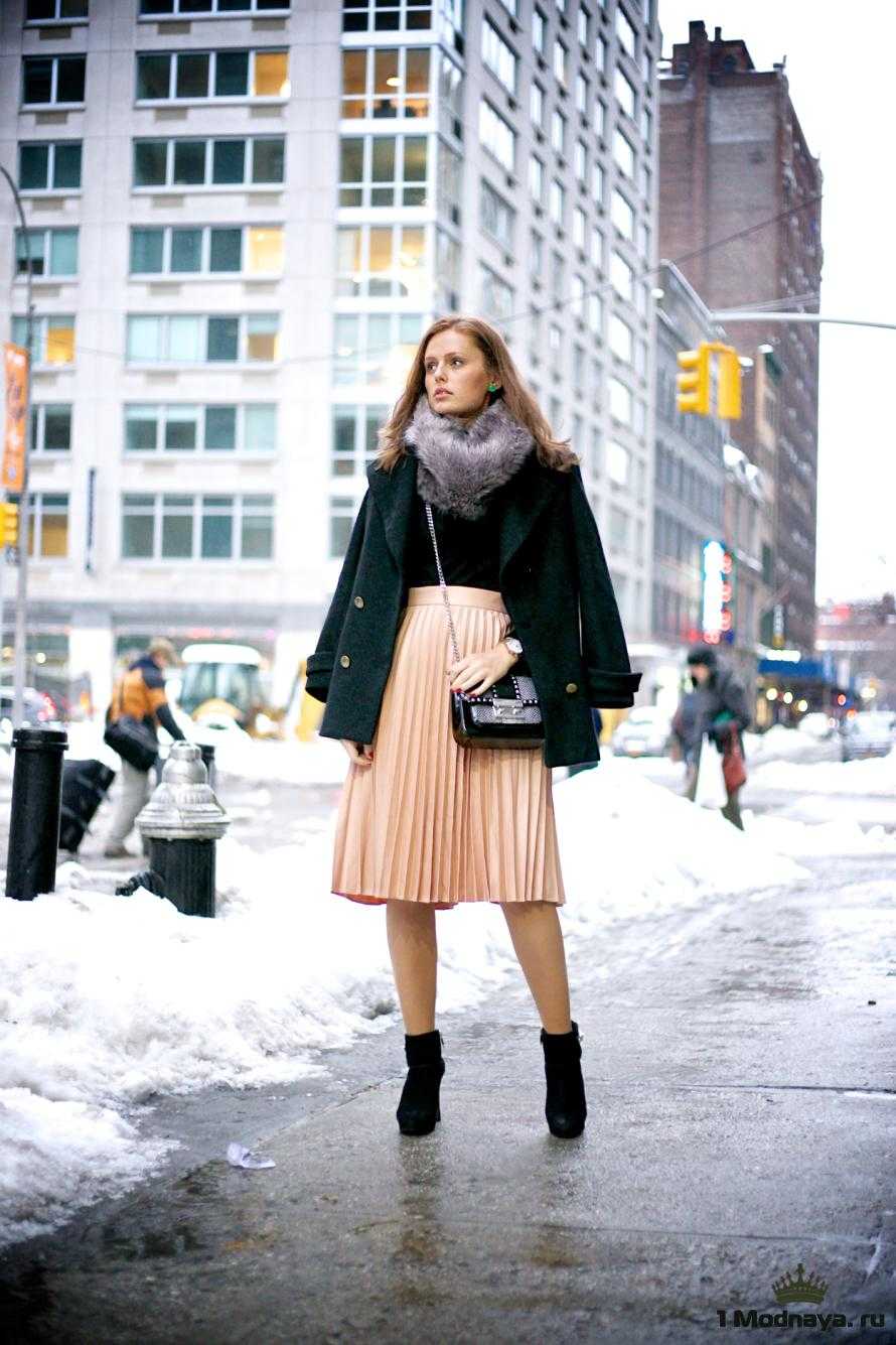 Аккуратные складочки могут разнообразить не только летний образ, но стать главным элементом зимнего лука. Такая вещь должна не только придавать девушке изящества и привлекательности, но и оберегать ее от морозов.