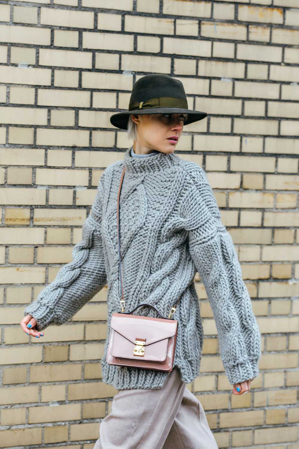 Для создания стильного лука сочетайте свитер с легкими шифоновыми, гофрированными, прозрачными платьями и юбками, брючными костюмами. Помните, если верх вашего образа объемный с крупными узорами и декором, то низ должен быть максимально лаконичным и утонченным. Так под свитера-оверсайз рекомендуется подбирать узкие брюки или черные джинсы-скинни.