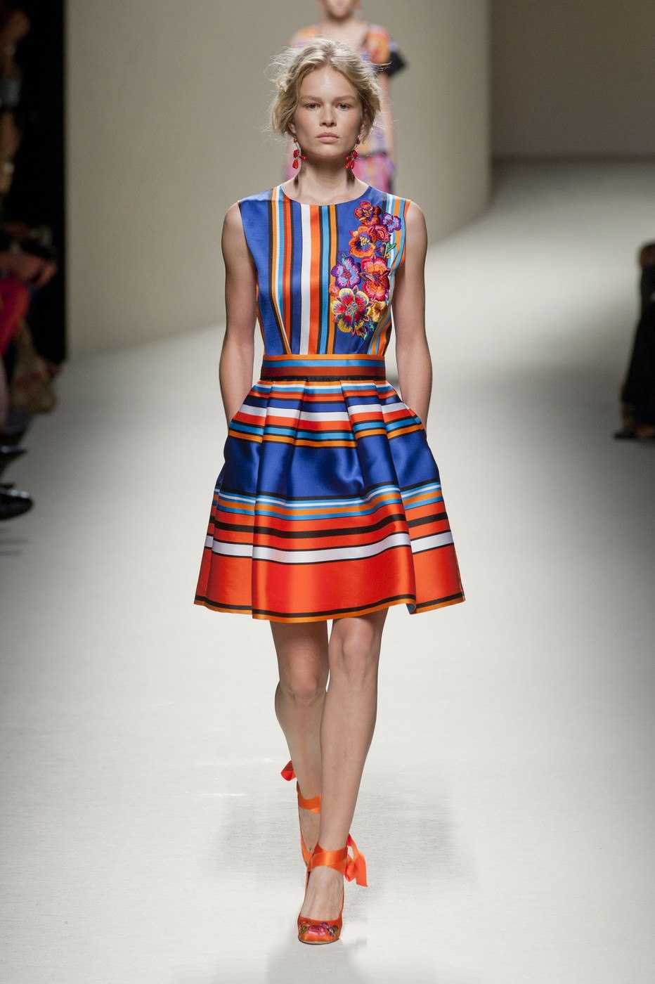 Бесспорно, яркие наряды более уместны в летних образах, поэтому дизайнеры предложили модницам модели с короткими рукавами или вовсе без них. Изделия свободного кроя, которые при желании можно дополнить контрастным черным поясом, элегантно акцентируют талию. В таком платье всегда будет комфортно и легко.