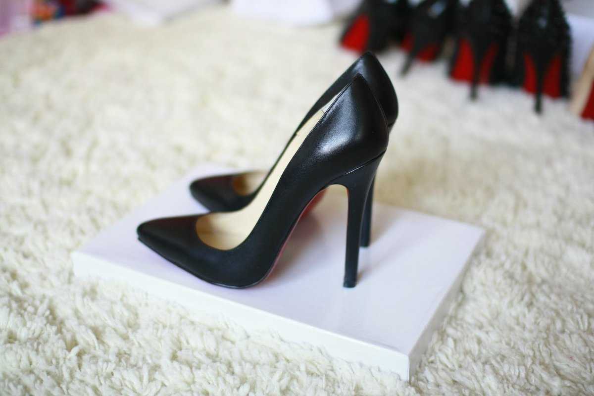- Christian Louboutin. Туфли на каблуке из натуральной мягкой кожи с красной глянцевой подошвой.