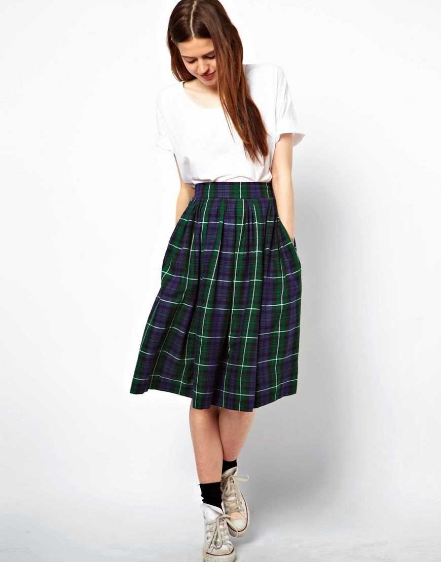 Помните, что юбка в клетку самодостаточный, яркий элемент гардероба. Надевая её, тщательно подбирайте обувь и аксессуары.