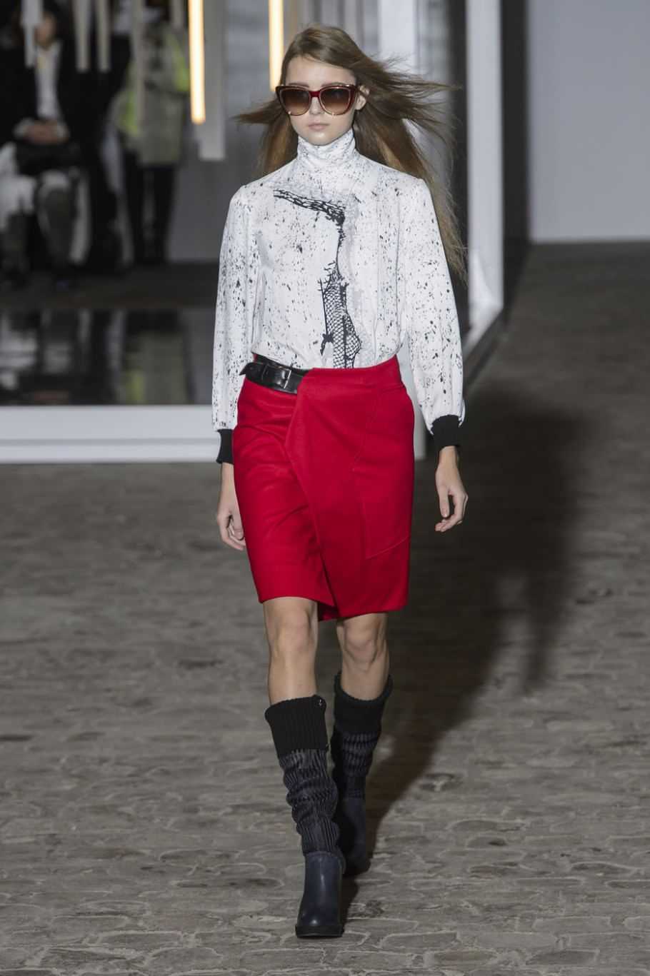 Если длинная трапеция требует всё-таки традиционного подхода, то, например, с короткой юбкой-трапецией прекрасно комбинируются ботфорты, особенно замшевые, а если дополнить ансамбль джинсовой курткой или косухой, получится стильный образ.