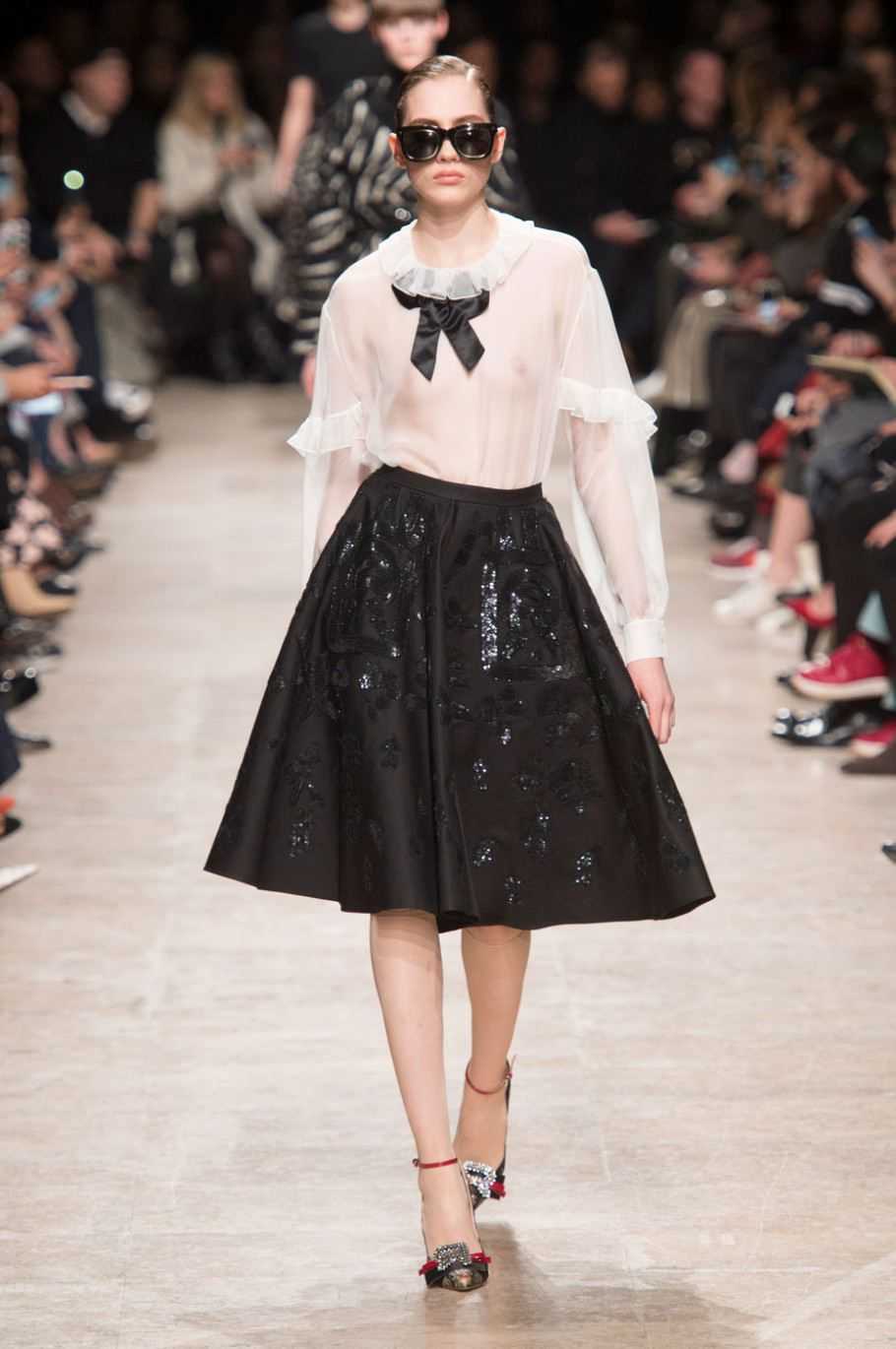 Модные тенденции по части декоративных элементов включают в себя практически все: вышивку, камни, оборки, металлические аксессуары и даже пайетки (Rochas).
