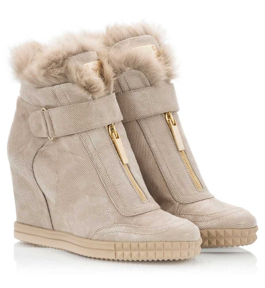 Эти сезоны любят сникерсы-ботинки из замши или кожи с мехом. Мех, как правило, является не только утеплителем, но и украшением модели: язычком или опушкой.