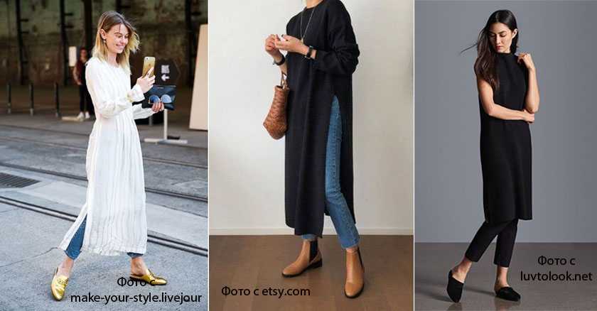 - Рубашками или блузами прямого кроя. Носить их можно на выпуск и заправляя.