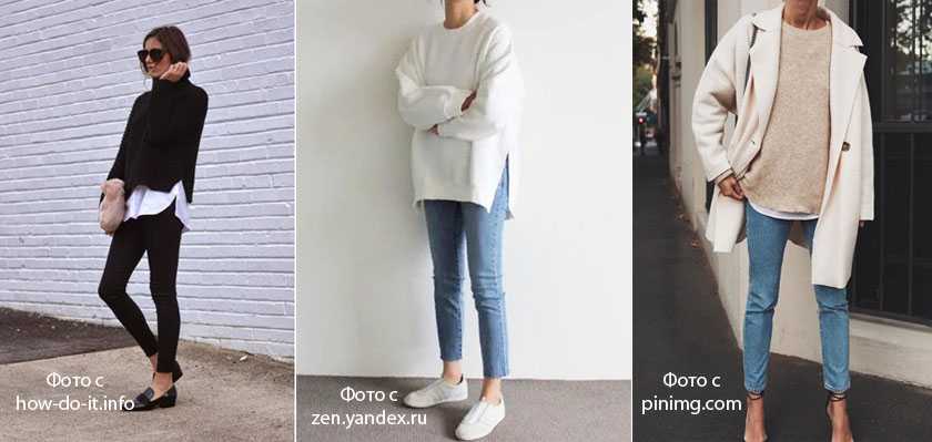 Скинни не обязательно носить исключительно с обувью на каблуке. Вы можете сочетать джинсы и с плоской подошвой, например, с балетками. Также неплохо смотрятся с джинсами оксфорды и лоферы. Несмотря на отсутствие каблука, образ все равно получается стильным и женственным.