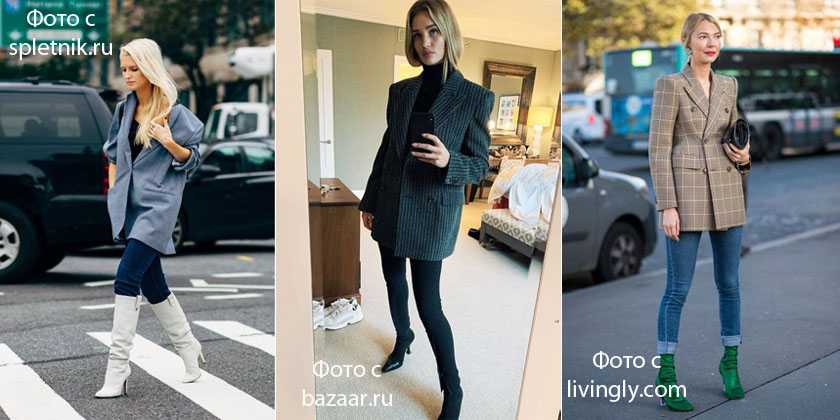 - Свободный пиджак. Дополнить такой образ однотонной водолазкой, топом без декоративных деталей и получится очень стильно.