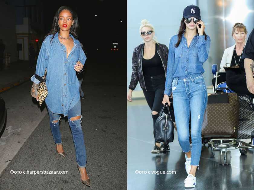 Сейчас актуальны, так называемые, тотал-деним, когда рубашка и джинсы из одной ткани. Воспользуемся этим приемом и подберем рубашку под цвет джинсов. Если они будут однотонны, то рубашку можно приправить в джинсы. Если разные по цвету, тогда лучше надеть навыпуск. Также рубашку можно расстегнуть, а под нее надеть футболку.