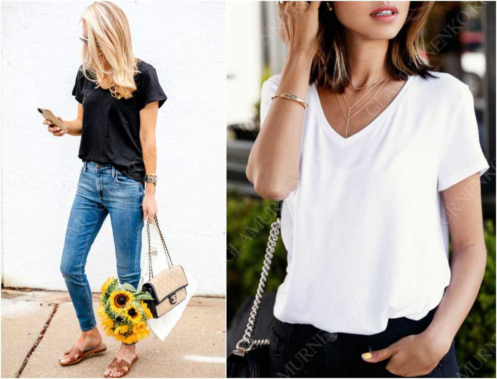 — итак, база гардероба в стиле кэжуал: простые топы, футболки, майки и водолазки. Именно они служат основой любого образа в стиле casual. В идеале однотонные, неброские, нейтральной цветовой гаммы: белые, серые, чёрные. При наличии вышеперечисленных можно докупить и другие – с надписями или в полоску, например.