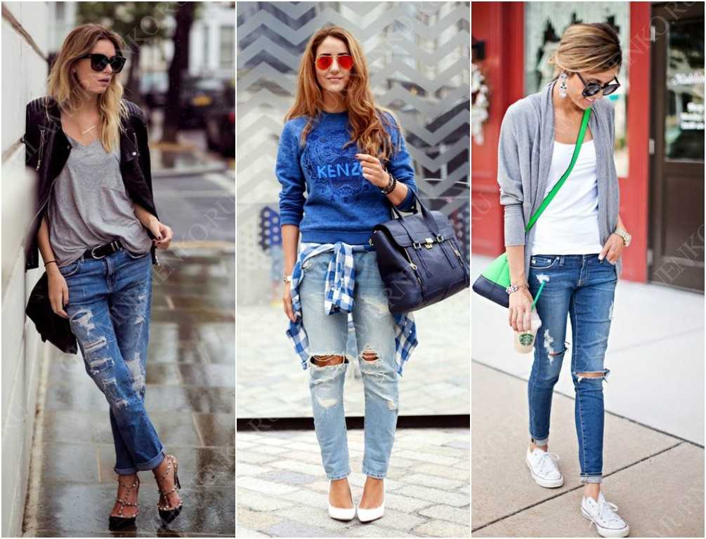 джинсы могут быть рваными, с дырками и потертостями. А также весьма популярны нашивки, аппликации, вышивка;