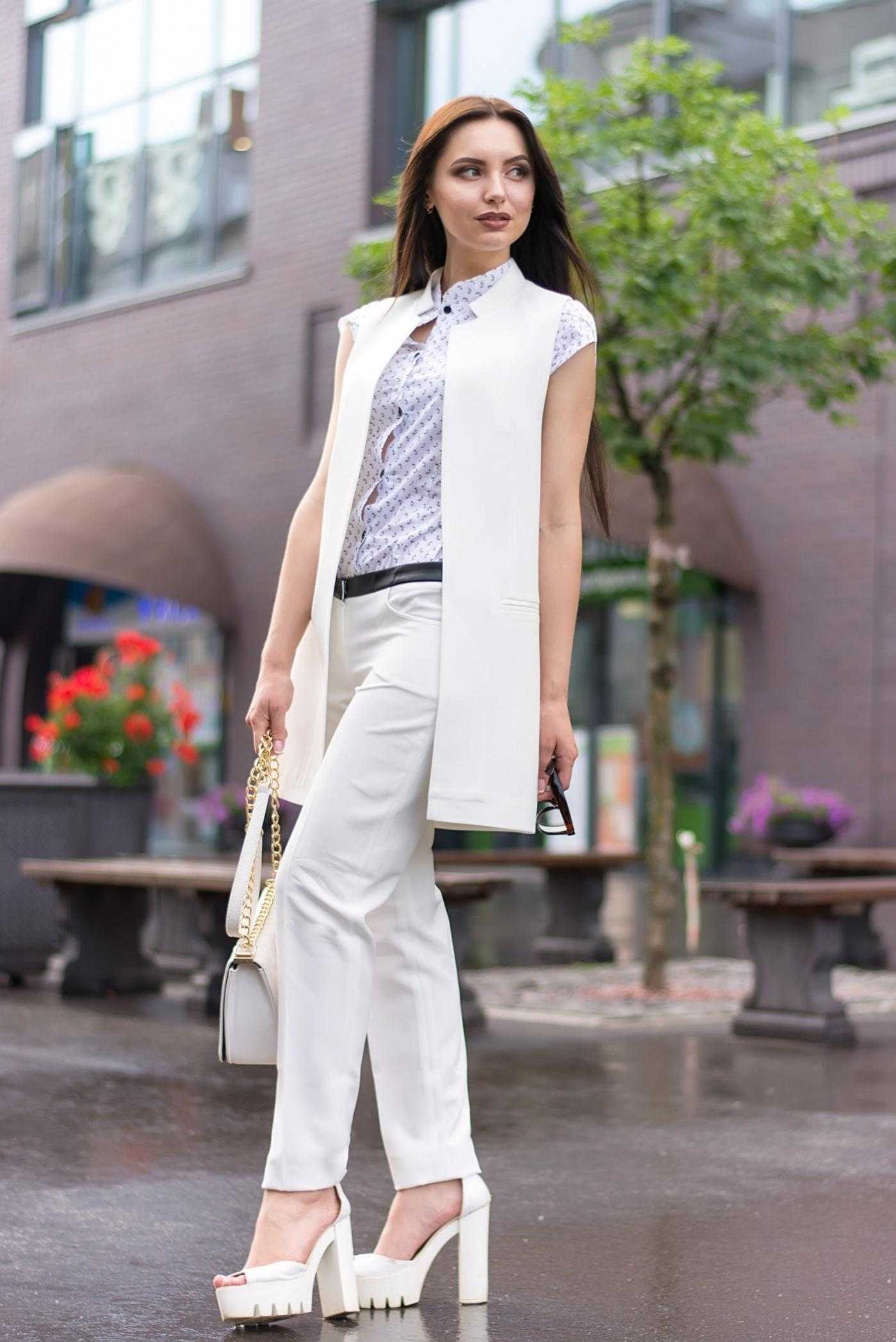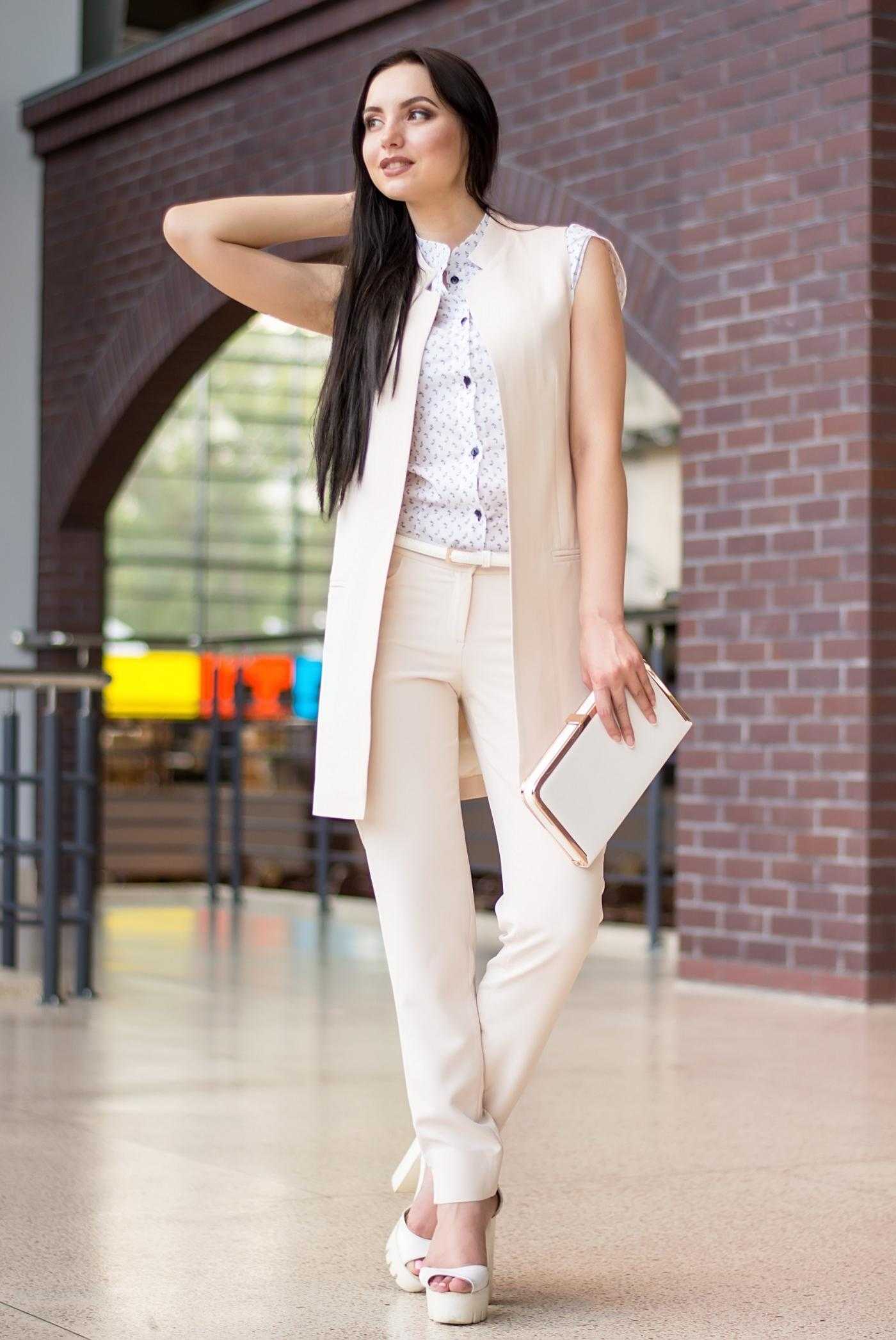 Офисные брюки в большинстве своем прямые, с приподнятой талией. В моду возвращается клеш, в тренде штаны с принтами. К зауженным брюкам стоит подобрать шифоновую блузу с неярким орнаментом – она придаст образу немного неординарности.